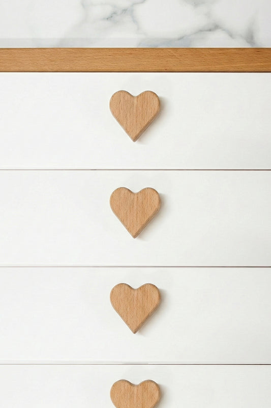 Kalp Şekilli Ahşap Kulp Çocuk Bebek Odası Mobilya Kulpu Dolap Çekmece Kulpu Düğme Kulp